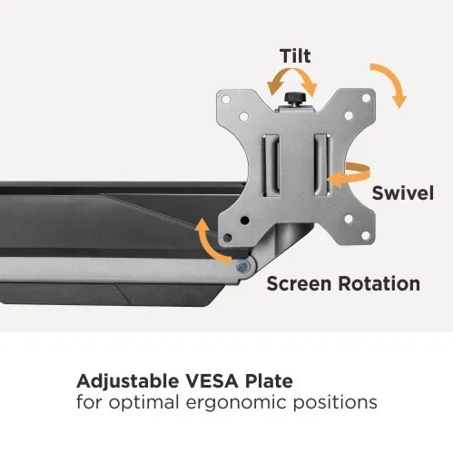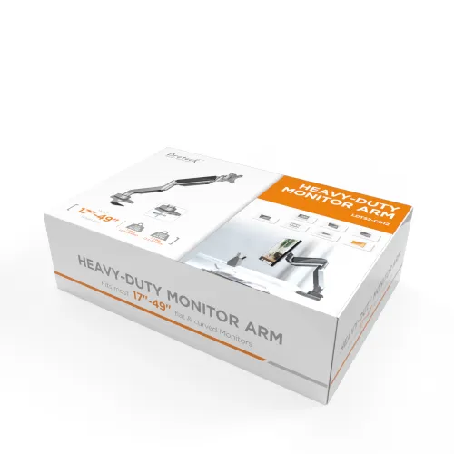Designed for most 17″-49” monitors and holds up to 18kg/39.6lbs (per screen), the LDT52-C012 Economy Heavy-Duty Gas Spring Monitor Arm is perfect for heavy and oversized displays. Integrated 180° rotation stop prevents the arm from hitting adjacent partitions and walls. Quick-release VESA plate for quick mounting or removal of the monitor in mere seconds. Rear tool holder provides easy access for any future adjustment. With absolutely great prices, the LDT52-C012 is one of the best choices to bolster your sales!