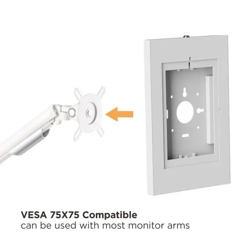 Sleek, secure, and durable. PAD34-01 is designed for installing on a wall or can be mounted on a standard VESA monitor arm. An innovative internal design creates an all-in-one enclosure – compatible with most 9.7” to 11” tablets including iPad, iPad Air, iPad Pro, Samsung Galaxy Tab A, Tab A7 & Tab S6 Lite. Featuring an anti-theft lock and durable steel construction, it is safe and durable for high-traffic areas and public use.
